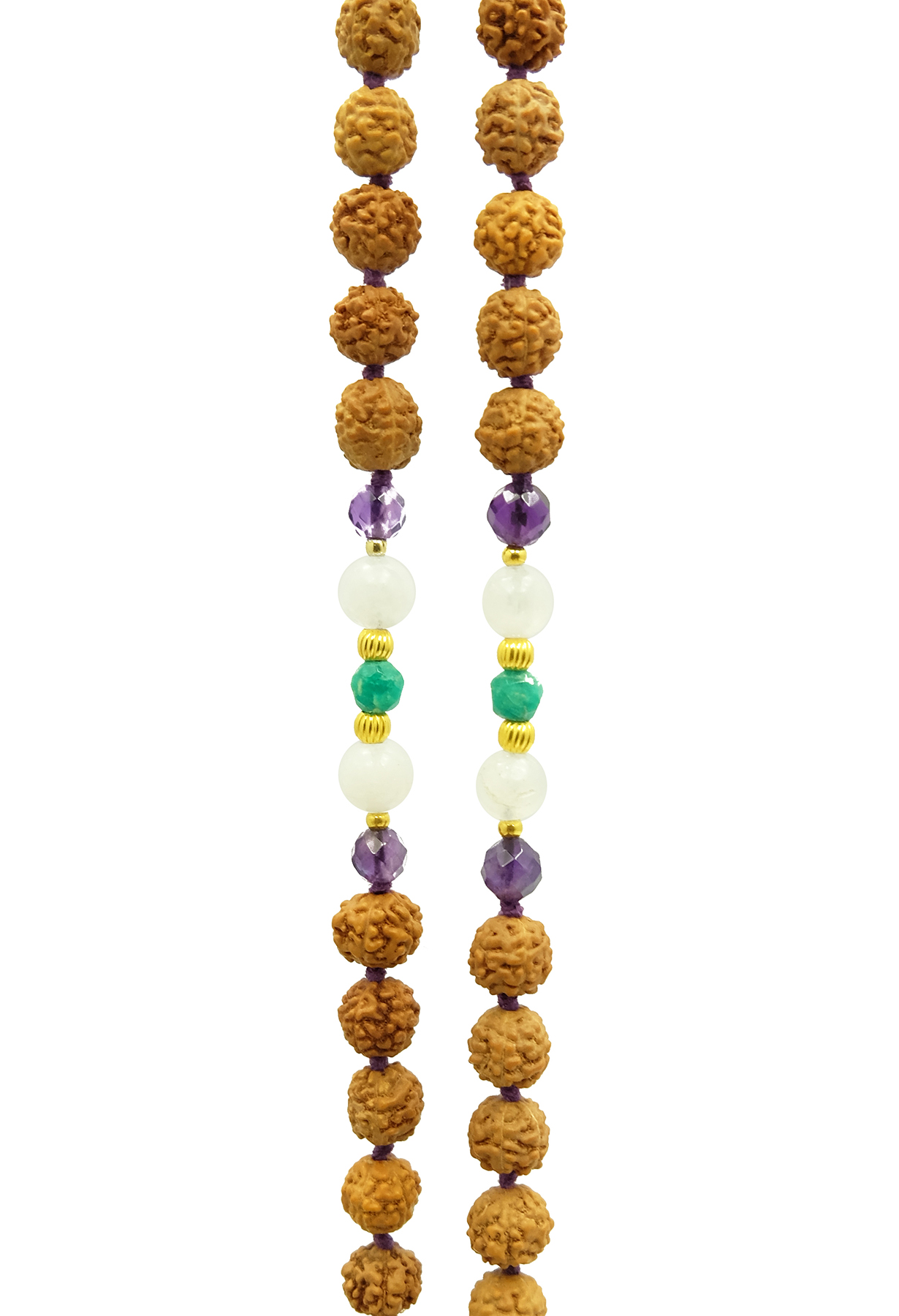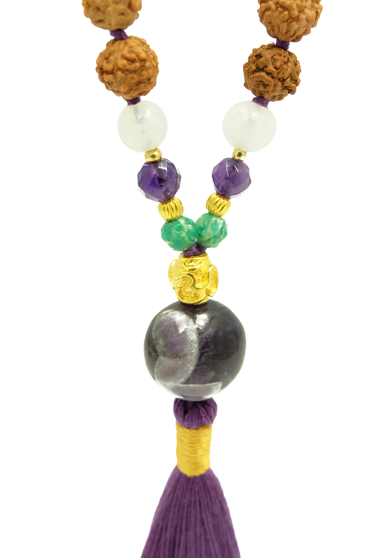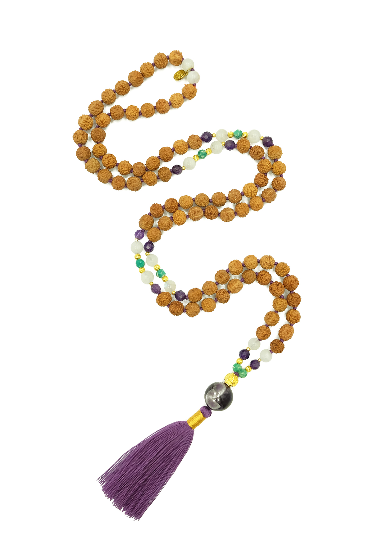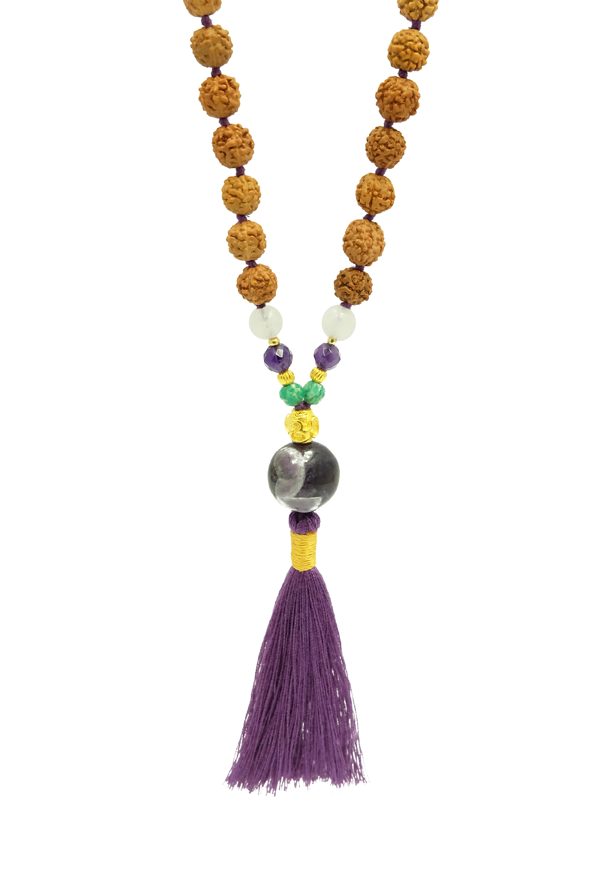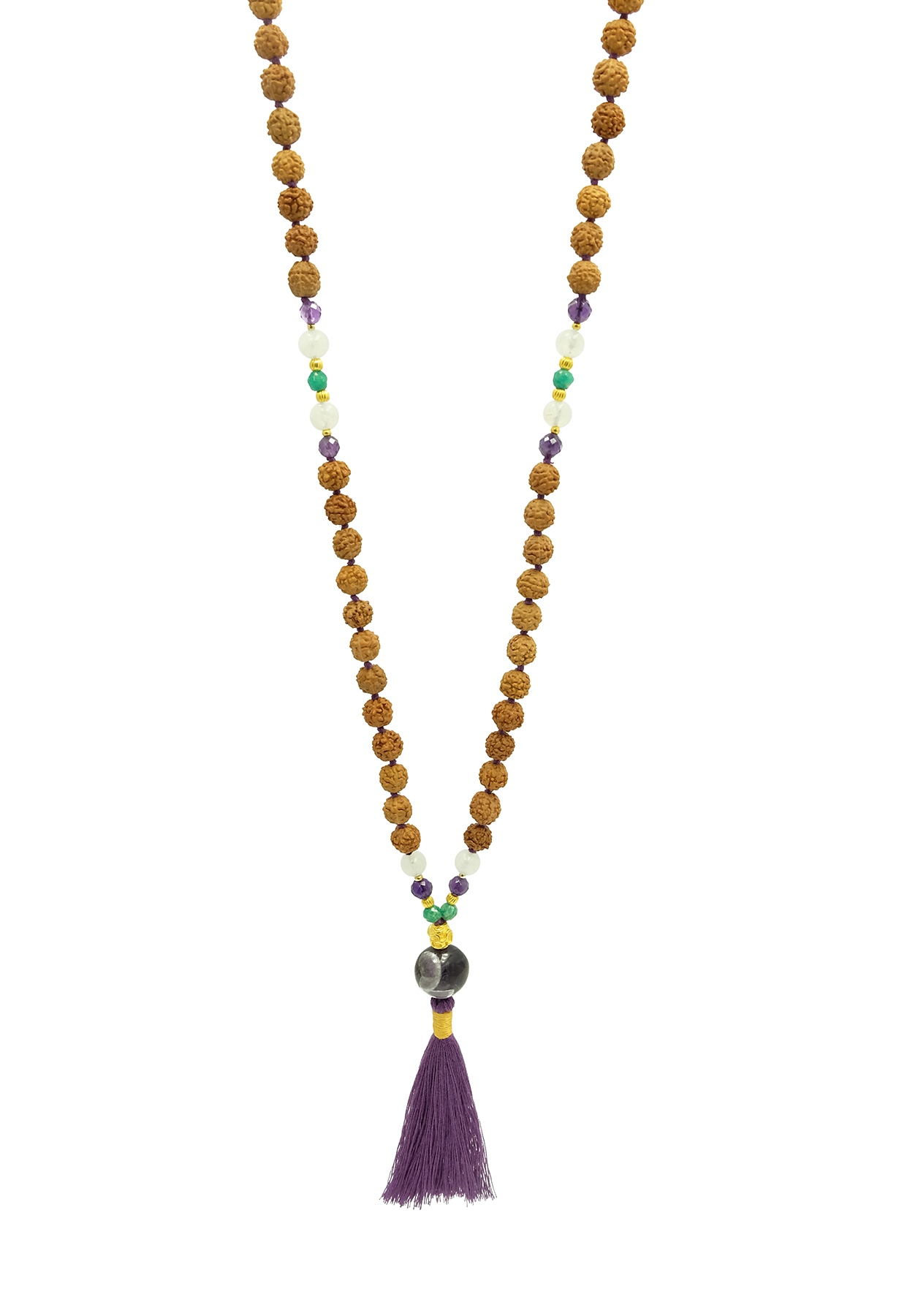 Ez a mala segíteni fog abban, hogy felébressze azt a mély bölcsességet, amelyet sejtjeidben hordozol… Képes leszel hallgatni a természetre, az elemekre, a saját testedre és az univerzális ritmusokra, így hitelesen és bölcsen navigálhatsz az élet hullámzó tengerén. . Segít felébreszteni a sámáni gyógyító erőket is, amelyek mindannyiunkban ott szunnyadnak. Ha intuitívabbá szeretnél válni, és szeretnéd, ha jobban ráéreznél a belső vezettetésre, ez a mala támogatni fog ebben a szándékodban. Rudraksha, hegyi kristály, ametiszt,türkiz.Balin készült szeretettel, szertartás keretén belül megáldva. Kata tervezte.